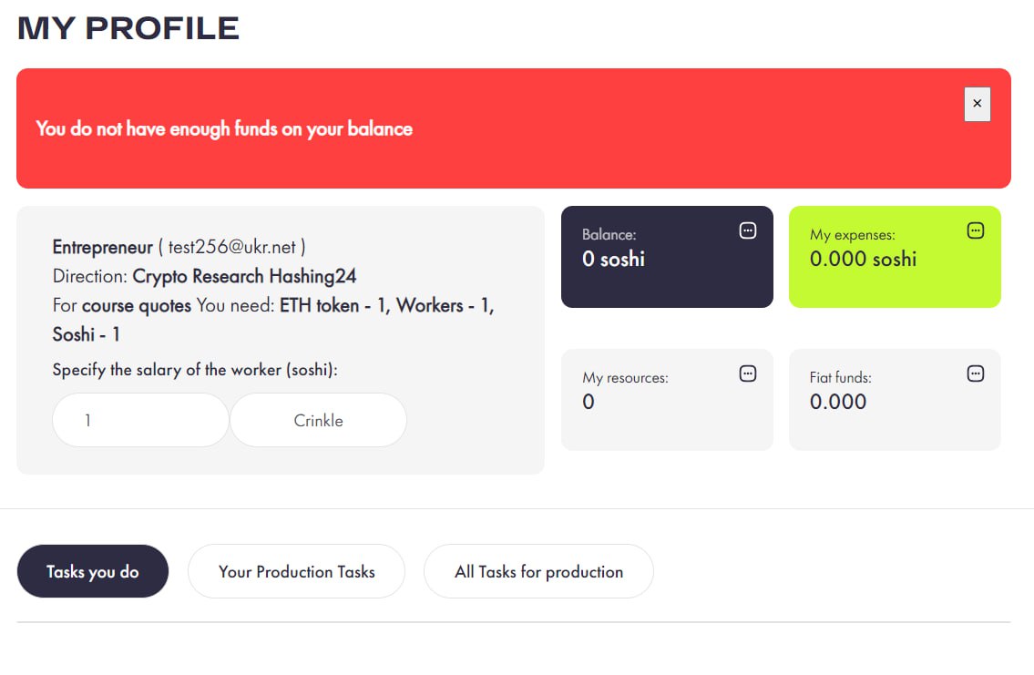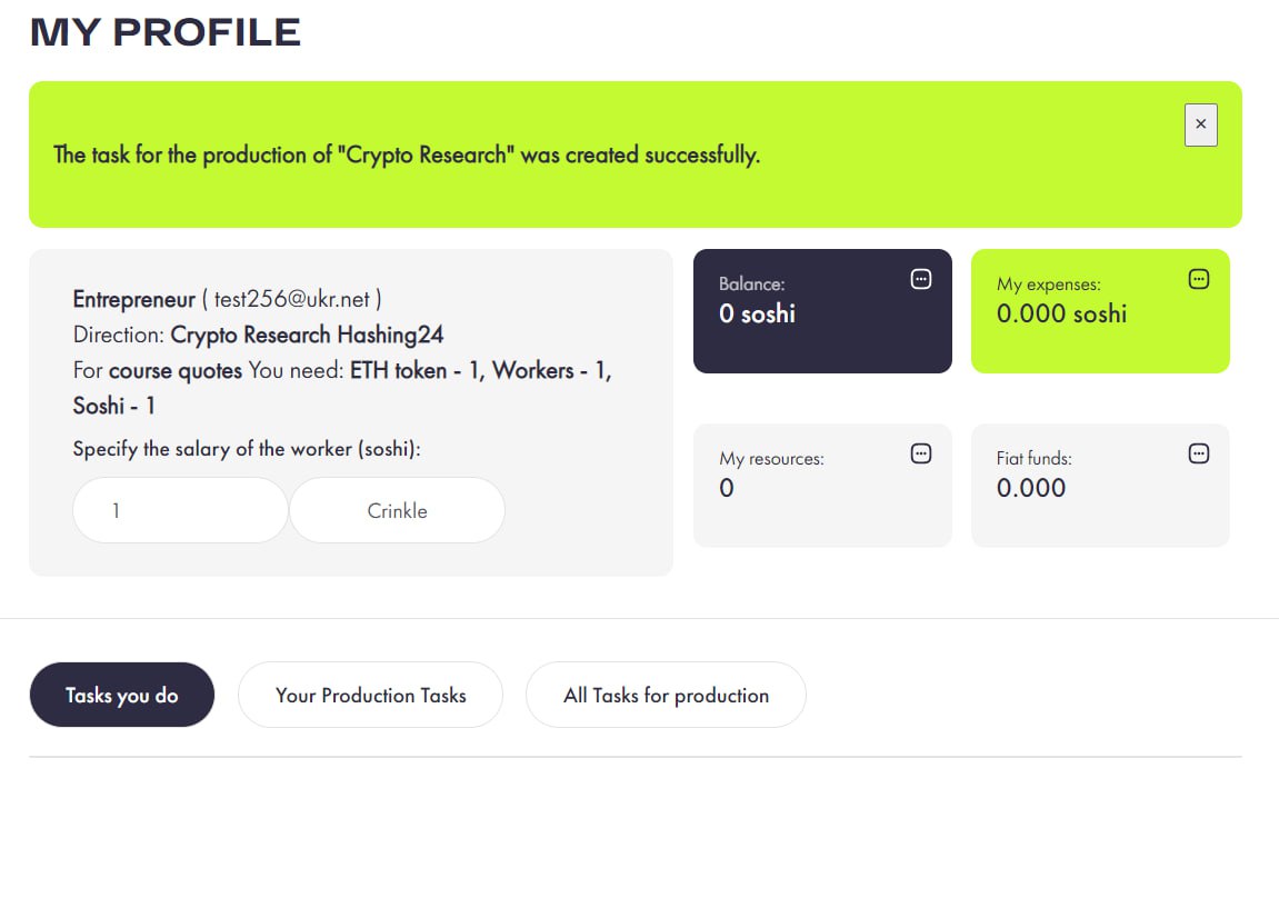 Сверили баланс и нажимаем кнопку Произвести. Далее система создаст задачу на выполнение, которая будет доступна другим участникам для выполнения.